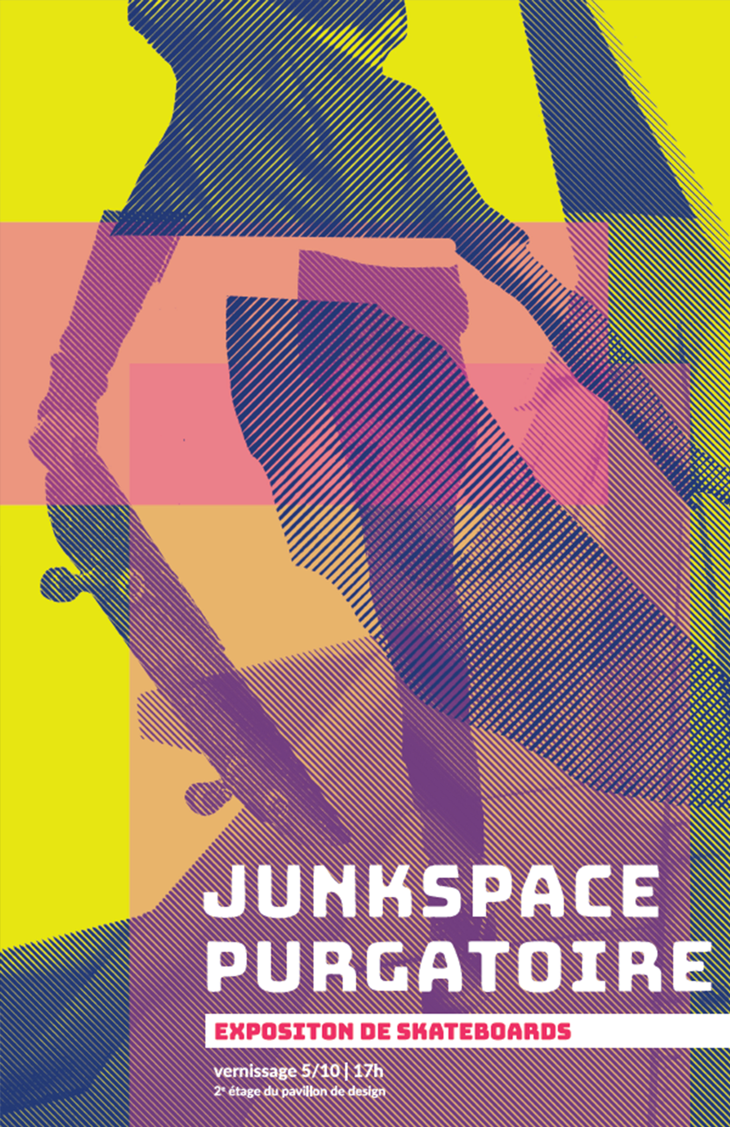 Affiche promotionnelle de l’exposition de skateboards de la cohorte 2017 du cours de Design Intro à L'UQAM